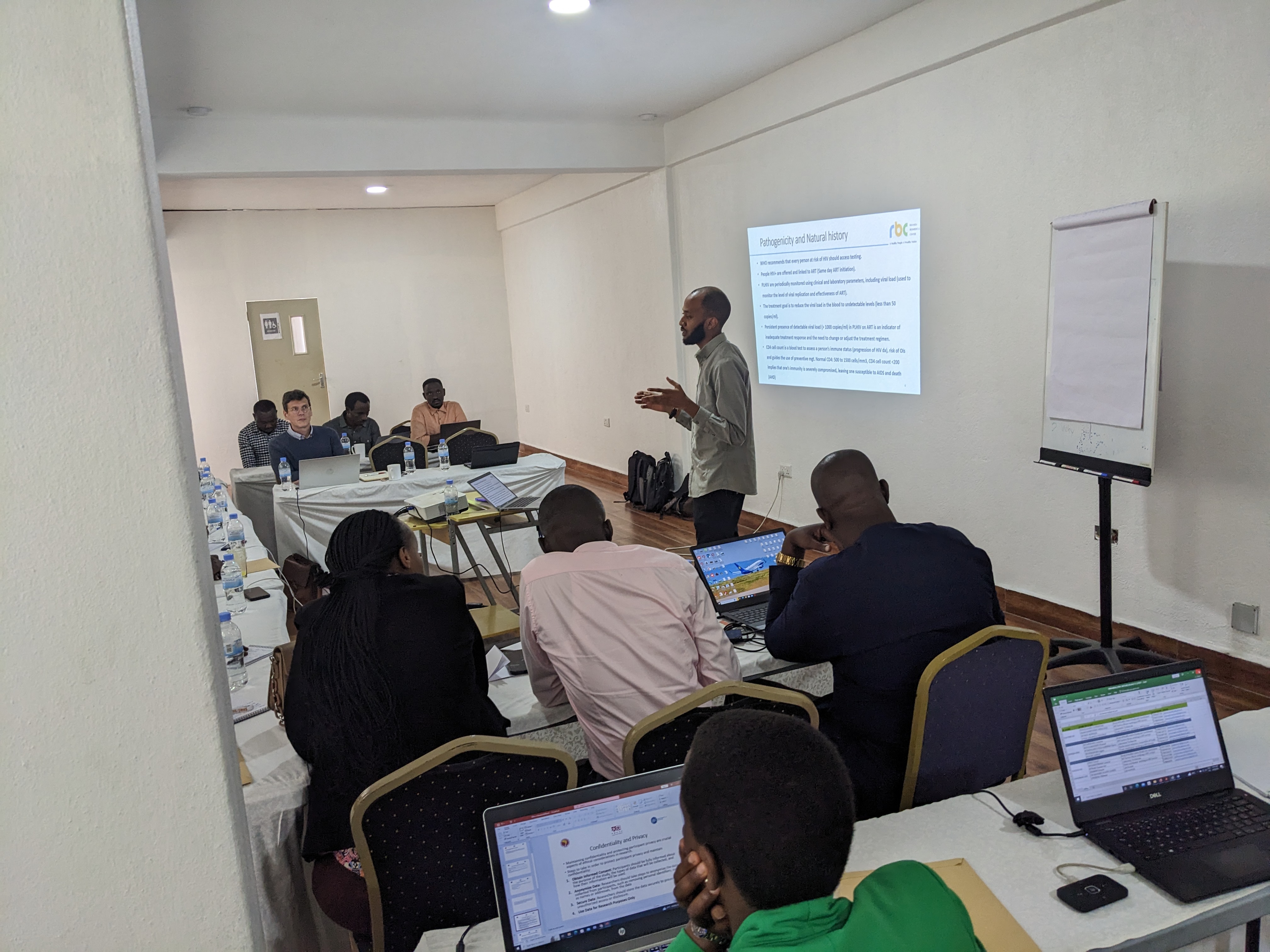 A picture taken when Prof Stefan JANSEN, PI of the EAPoC VL study /Rwanda, was facilitating in-person the protocol training for the intervention site staff